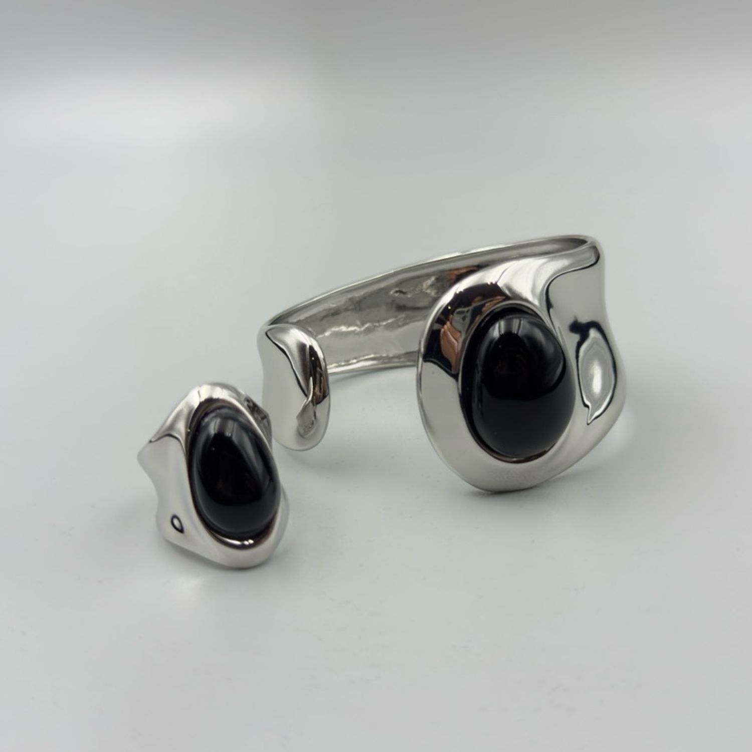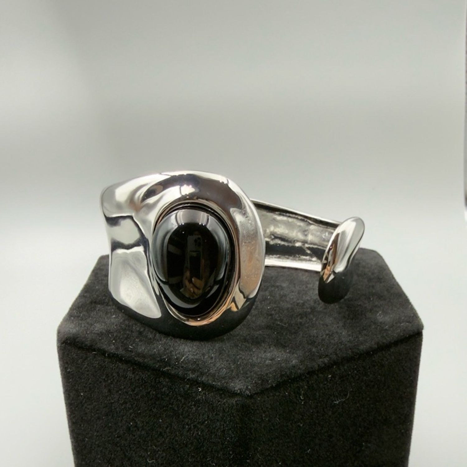 Бөгжний хэмжээ: Хар обсидиан чулууны урт 2см, бөгжний өргөн 2.8см, амалгаатай тул тосгож жижигсгэх боломжтой.